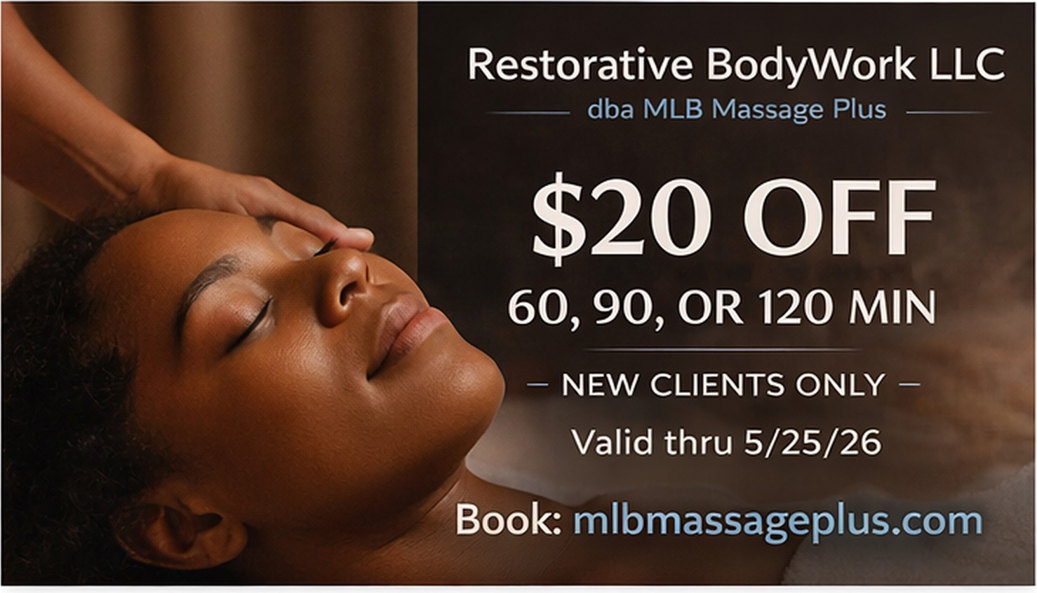 At Restorative BodyWork LLC, dba MLB Massage Plus, our focus is simple: helping you reconnect with your body, reduce stress, and restore balance—one session at a time.